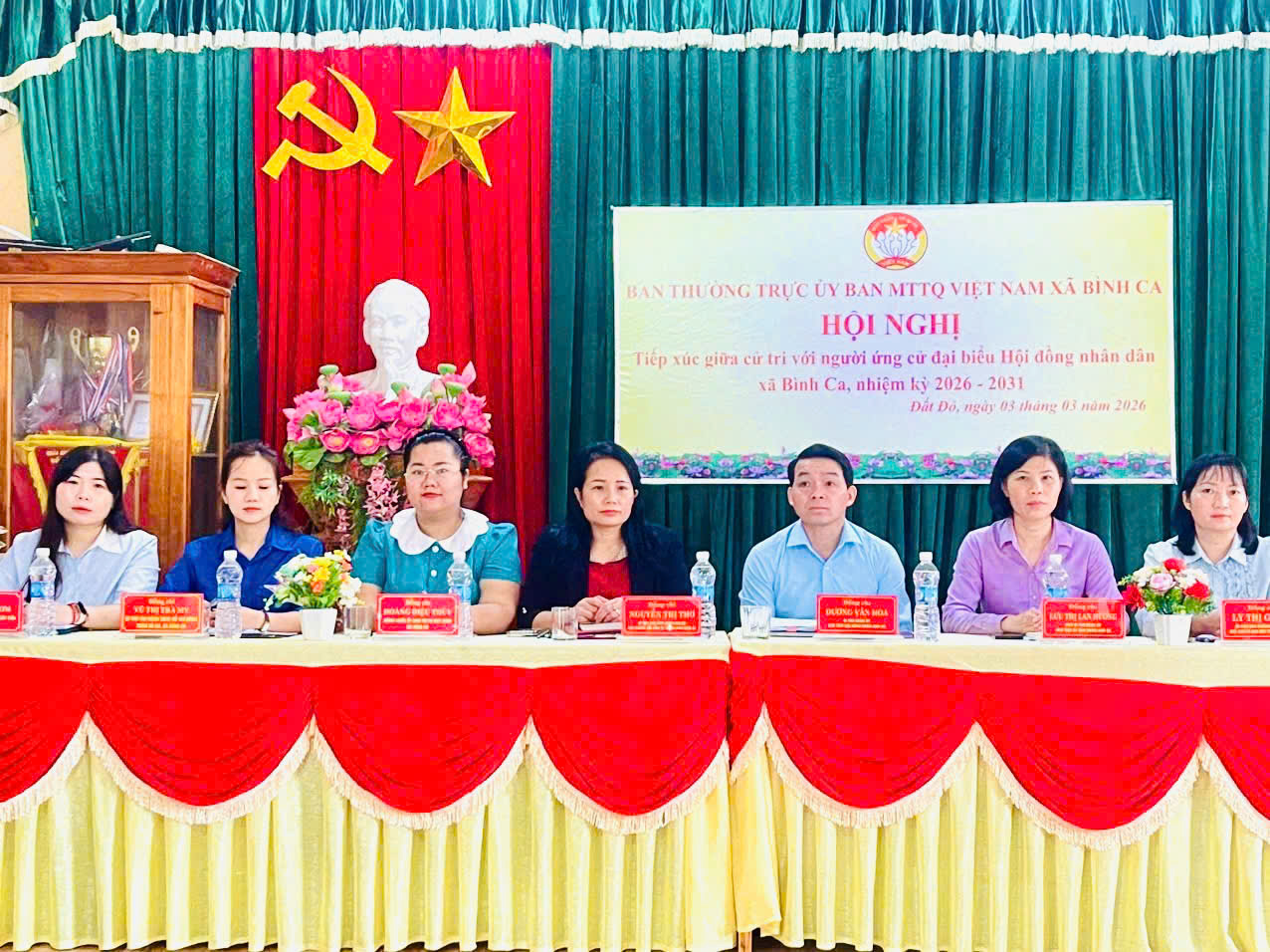 Vừa qua, Ban Thường trực Ủy ban Mặt trận Tổ quốc Việt Nam xã Bình Ca phối hợp tổ chức Hội nghị tiếp xúc cử tri vận động bầu cử đối với Đơn vị bầu cử số 01