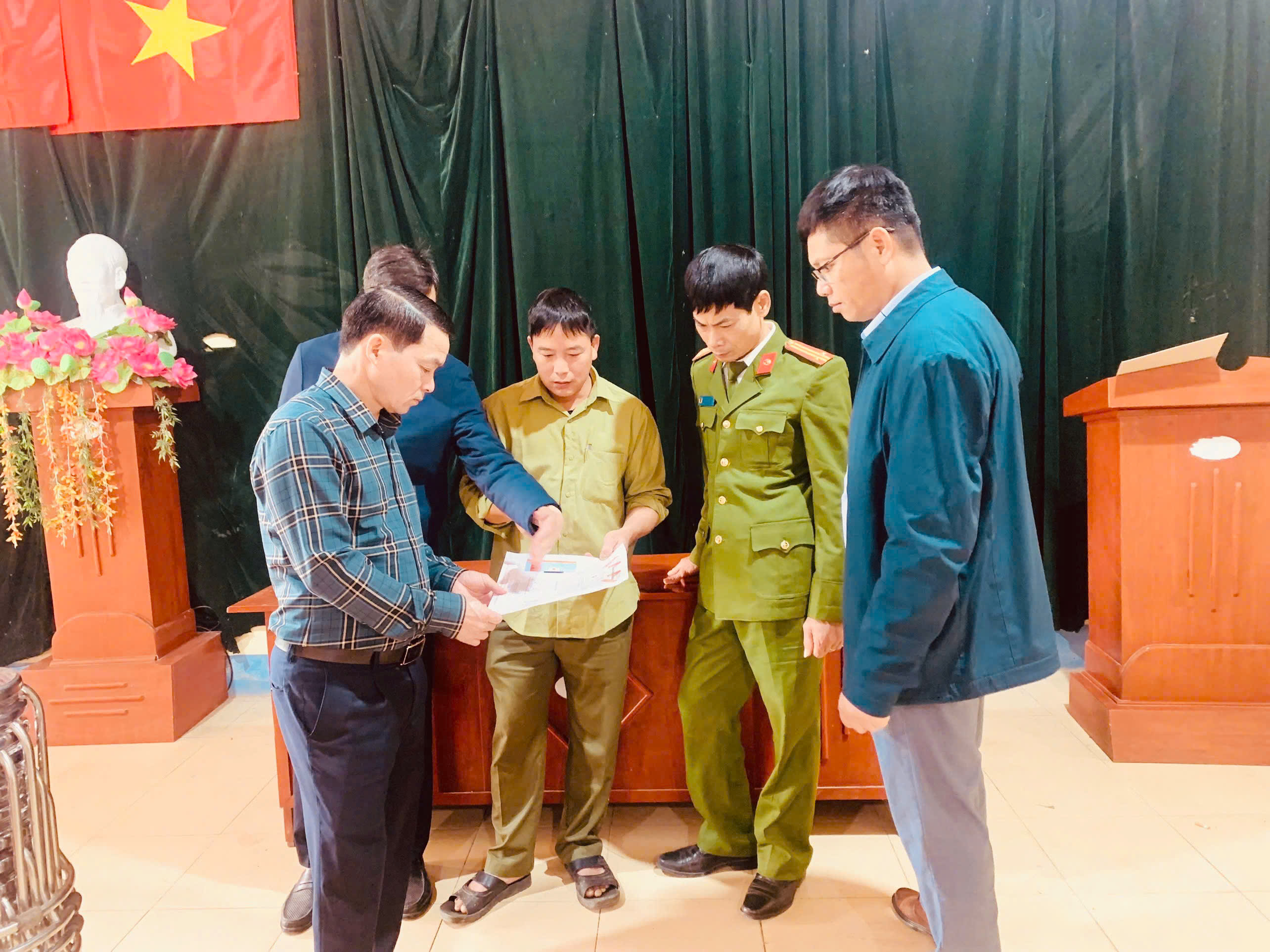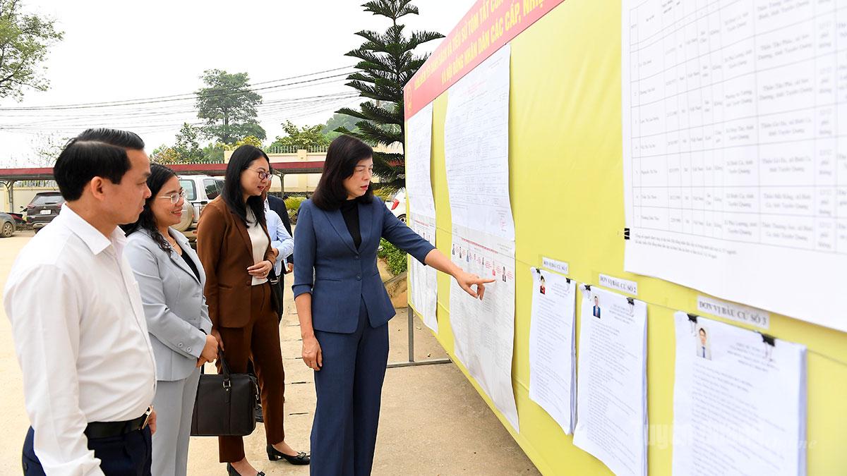 Các đồng chí lãnh đạo tỉnh, lãnh đạo xã kiểm tra công tác chuẩn bị bầu cử tại xã Bình Ca.