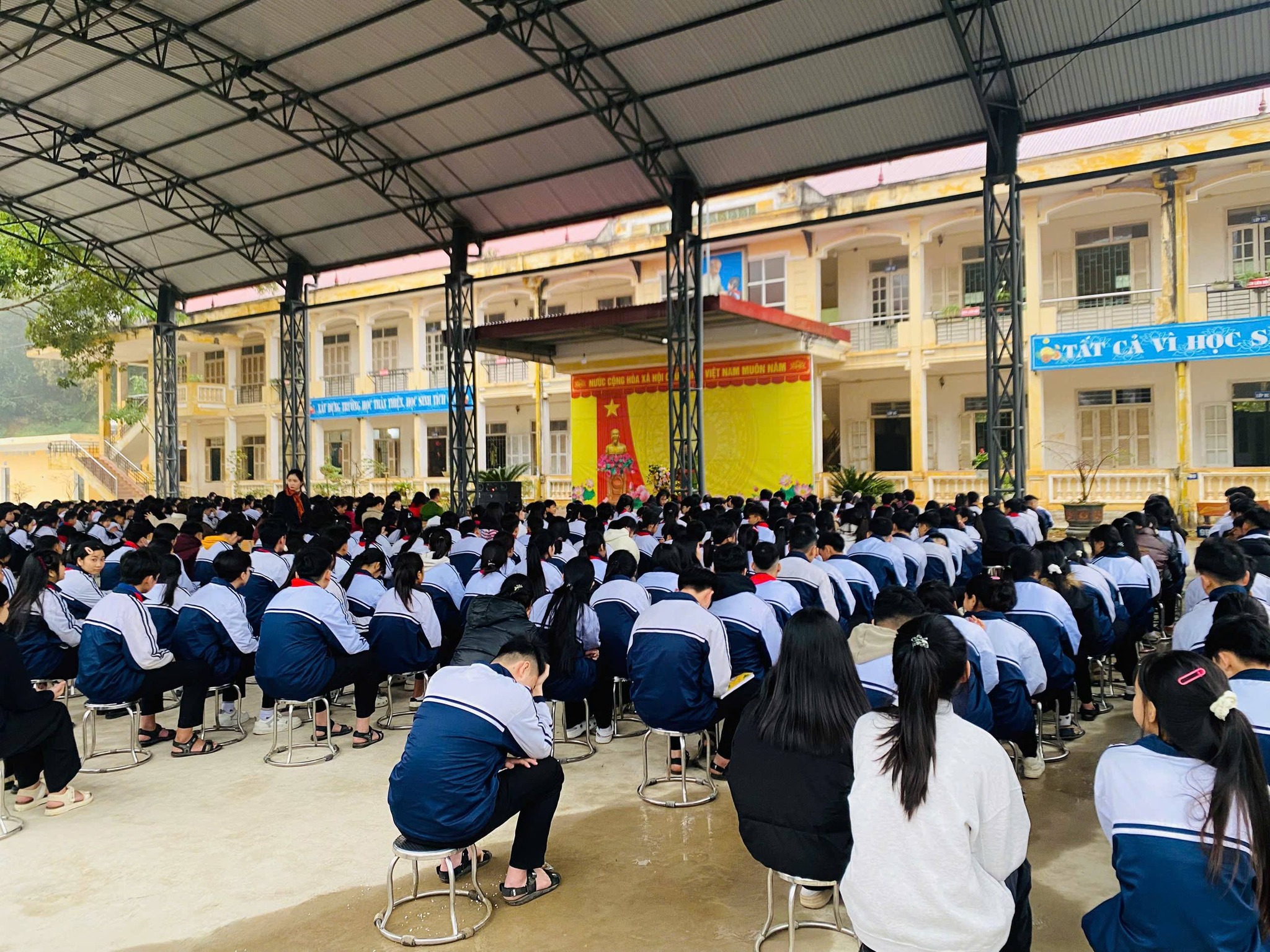 Hoạt động tuyên truyền tập thể tại sân trường