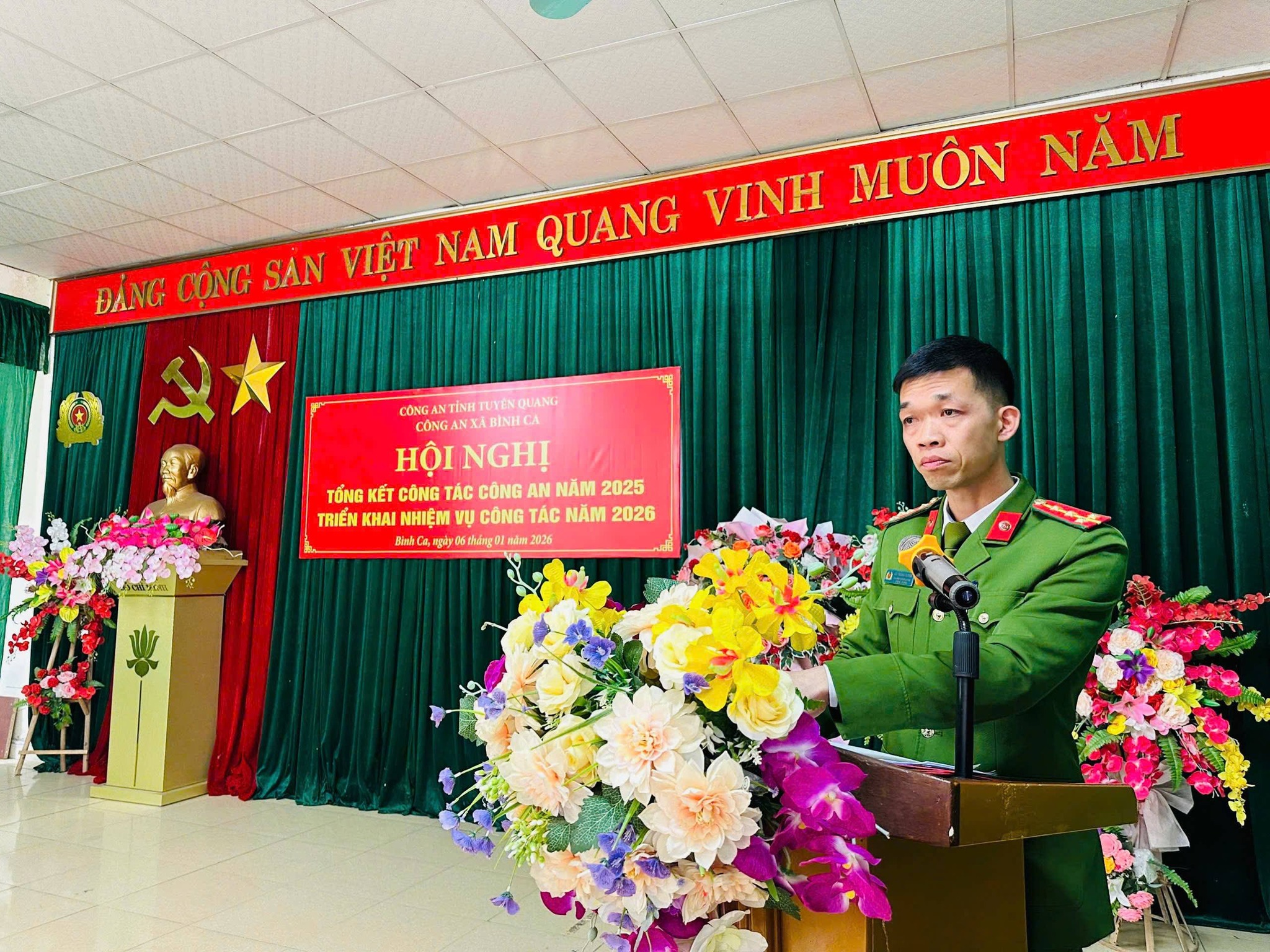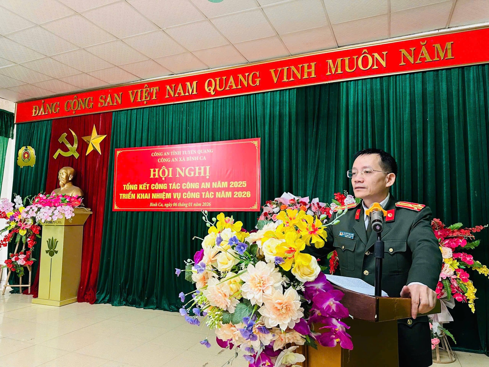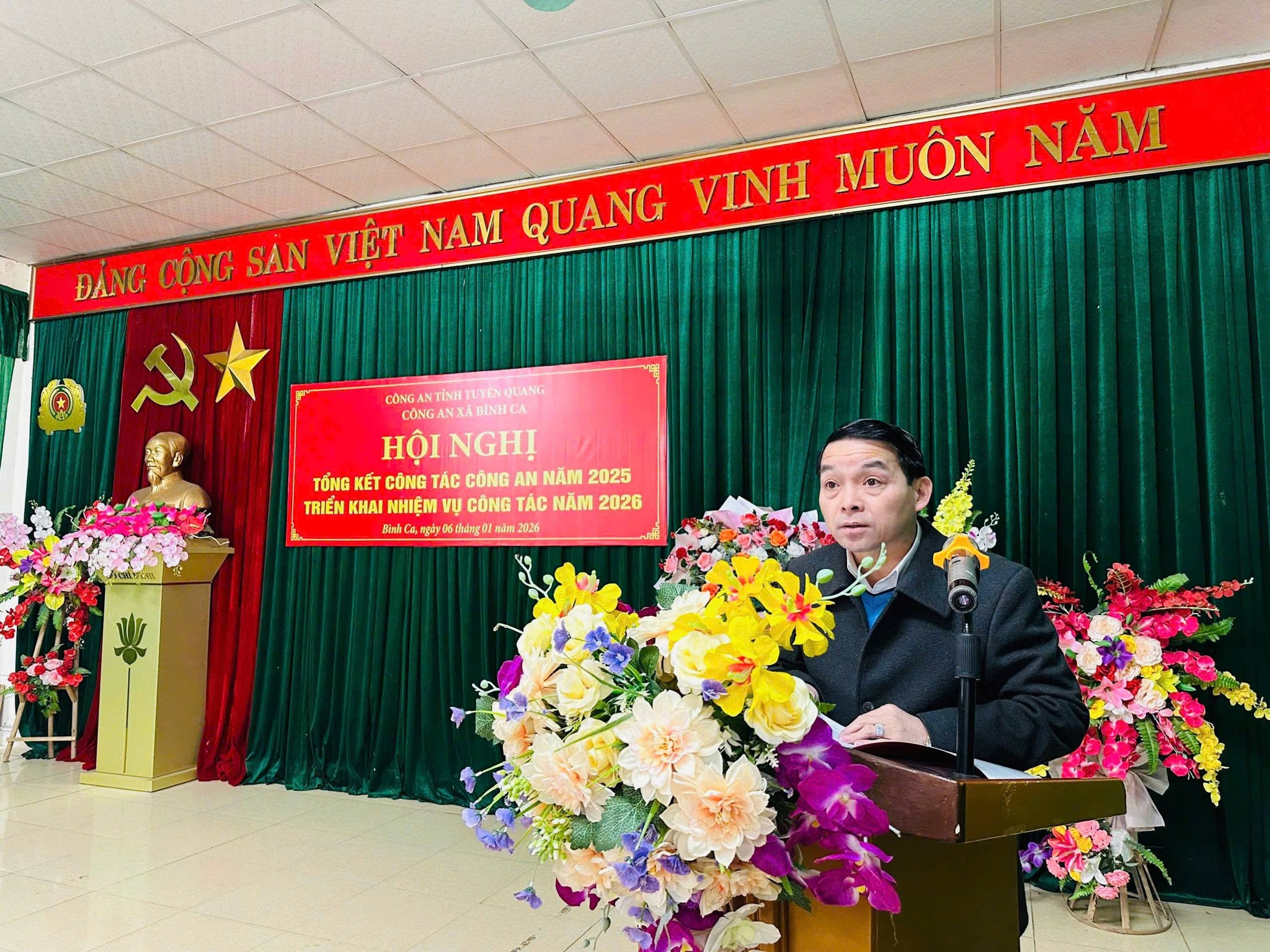 Cuối hội nghị, đồng chí Trưởng Công an xã Bình Ca đã phát động phong trào thi đua “Vì an ninh Tổ quốc” năm 2026, kêu gọi toàn thể cán bộ, chiến sĩ tiếp tục đoàn kết, thống nhất, nêu cao tinh thần trách nhiệm, quyết tâm xây dựng lực lượng Công an xã chính quy, tinh nhuệ, hoạt động hiệu lực, hiệu quả, hoàn thành xuất sắc các nhiệm vụ được giao trong năm 2026.