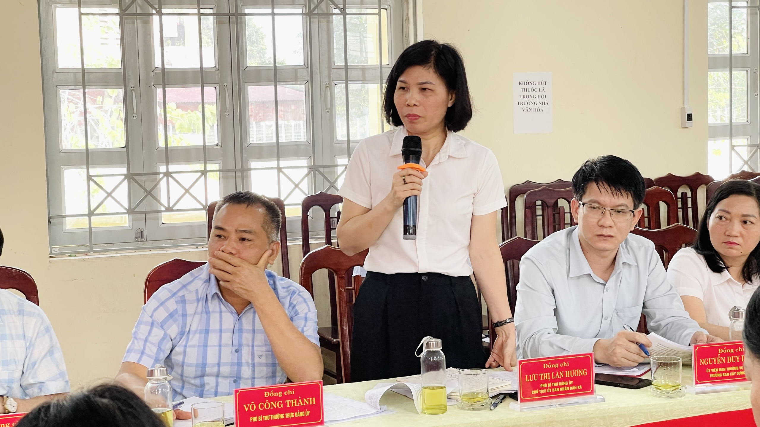 Đồng chí Lưu Thị Lan Hương, Phó Bí thư Đảng uỷ, Chủ tịch UBND xã phát biểu tại buổi làm việc.