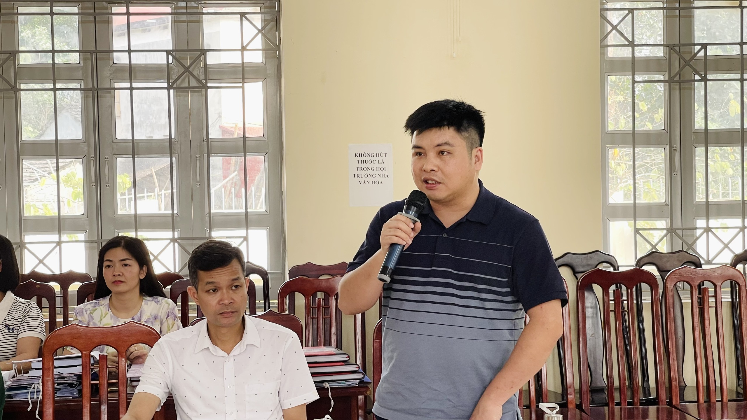 Đồng chí Nguyễn Hoàng Hải, Phó trưởng phòng Kinh tế xã Bình Ca phát biểu tại buổi làm việc.