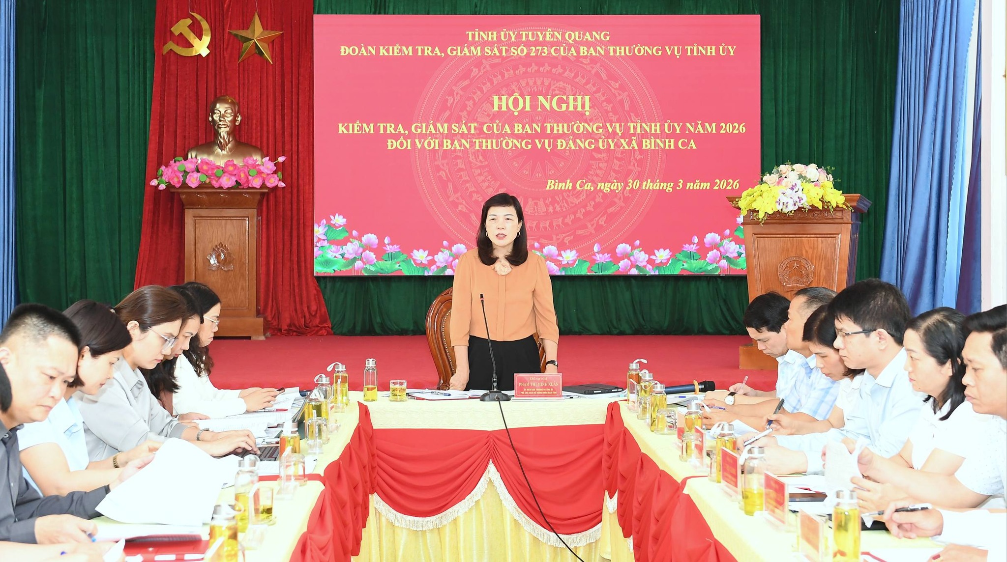 Phát biểu kết luận buổi làm việc, đồng chí Phạm Thị Minh Xuân đánh giá cao những kết quả mà Đảng bộ, chính quyền và nhân dân xã Bình Ca đã đạt được trong thời gian qua. Đồng chí đề nghị Đảng ủy xã Bình Ca tiếp thu ý kiến của đoàn kiểm tra, bổ sung, hoàn thành các báo cáo theo quy định; tập trung lãnh đạo, chỉ đạo toàn diện, thực hiện ngay các giải pháp khắc phục tồn tại, tháo gỡ khó khăn, vướng mắc; rà soát bố trí, sắp xếp đội ngũ cán bộ, biên chế được giao cho phù hợp, sử dụng hiệu quả cơ sở vật chất sau khi vận hành mô hình chính quyền địa phương hai cấp; đẩy nhanh tiến độ giải ngân vốn đầu tư công trên địa bàn; quan tâm đến công tác quản lý quy hoạch xây dựng, tăng cường quản lý đất đai; định hướng chuyển đổi cơ cấu cây trồng vật nuôi phù hợp, ứng dụng tiến bộ khoa học - kỹ thuật để tăng năng suất, chất lượng các sản phẩm đem lại hiệu quả kinh tế cao cho người dân trên địa bàn.