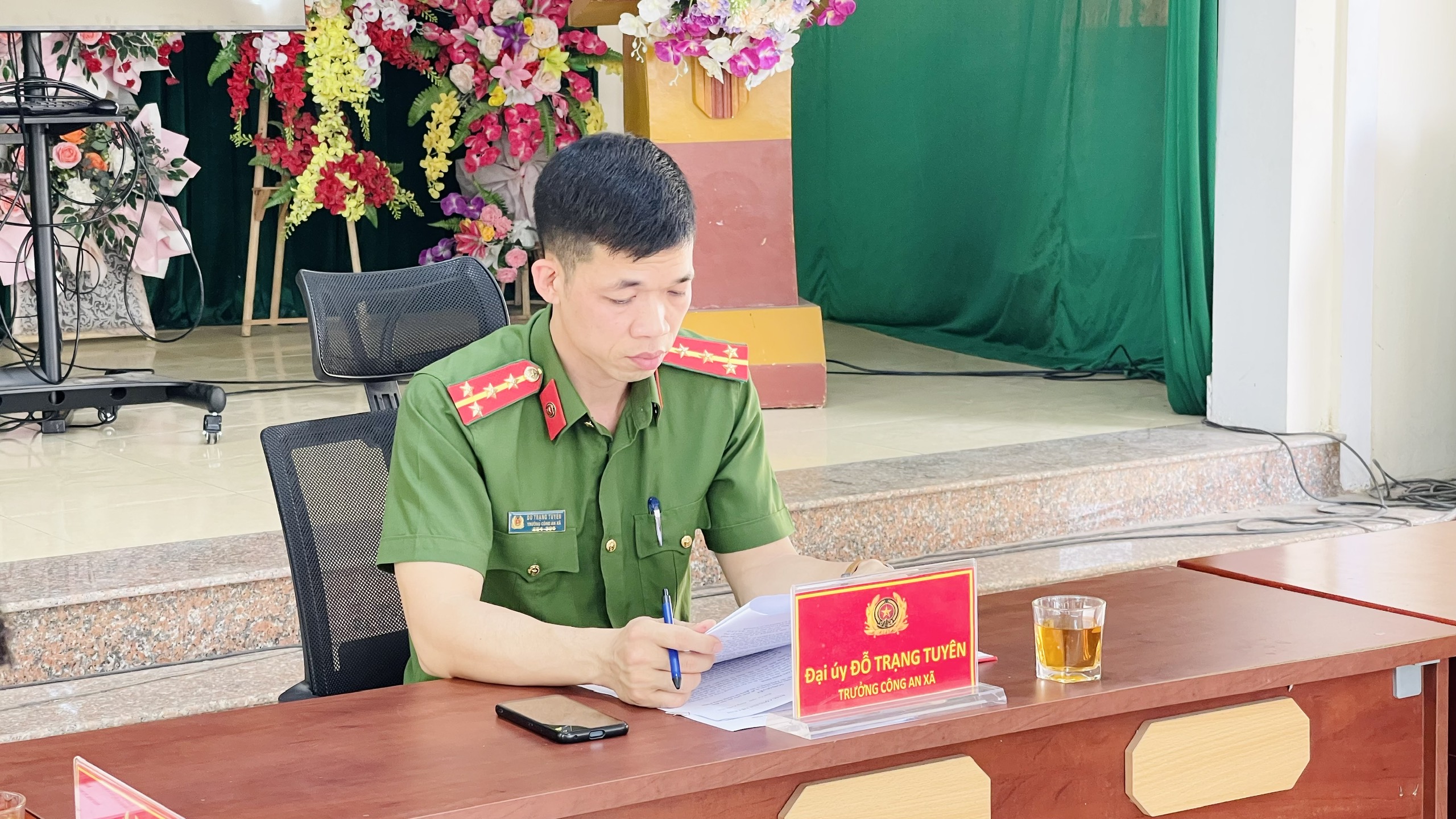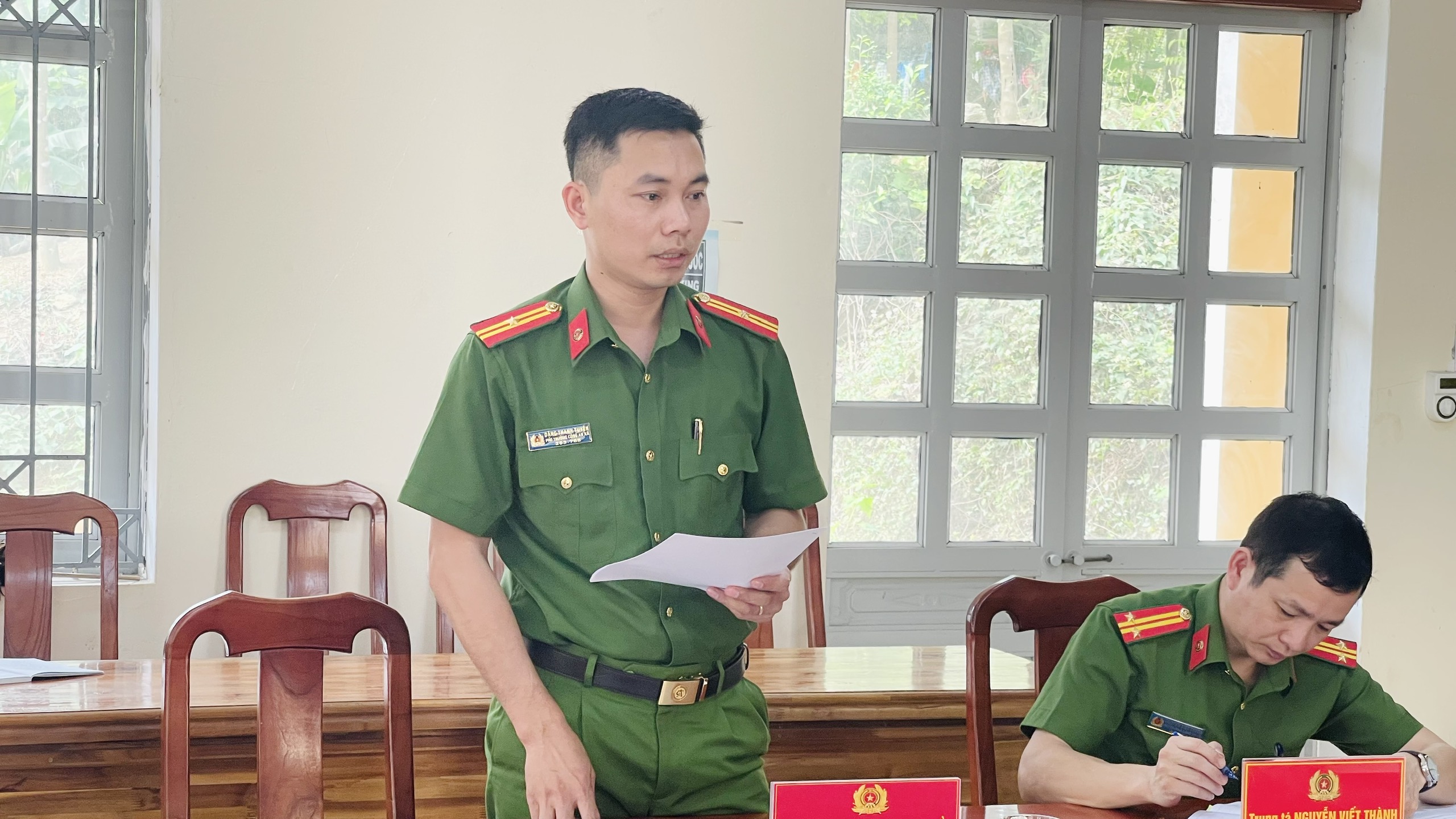 Đồng chí Đại úy Đỗ Trạng Tuyên, Trưởng Công an xã chủ trì buổi sinh hoạt.