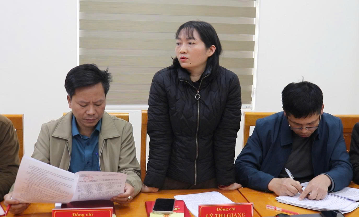 Đồng chí Lý Thị Giang, Ủy viên BTV Đảng ủy, Chủ tịch Ủy ban MTTQ Việt Nam xã phát biểu thảo luận tại hội nghị.