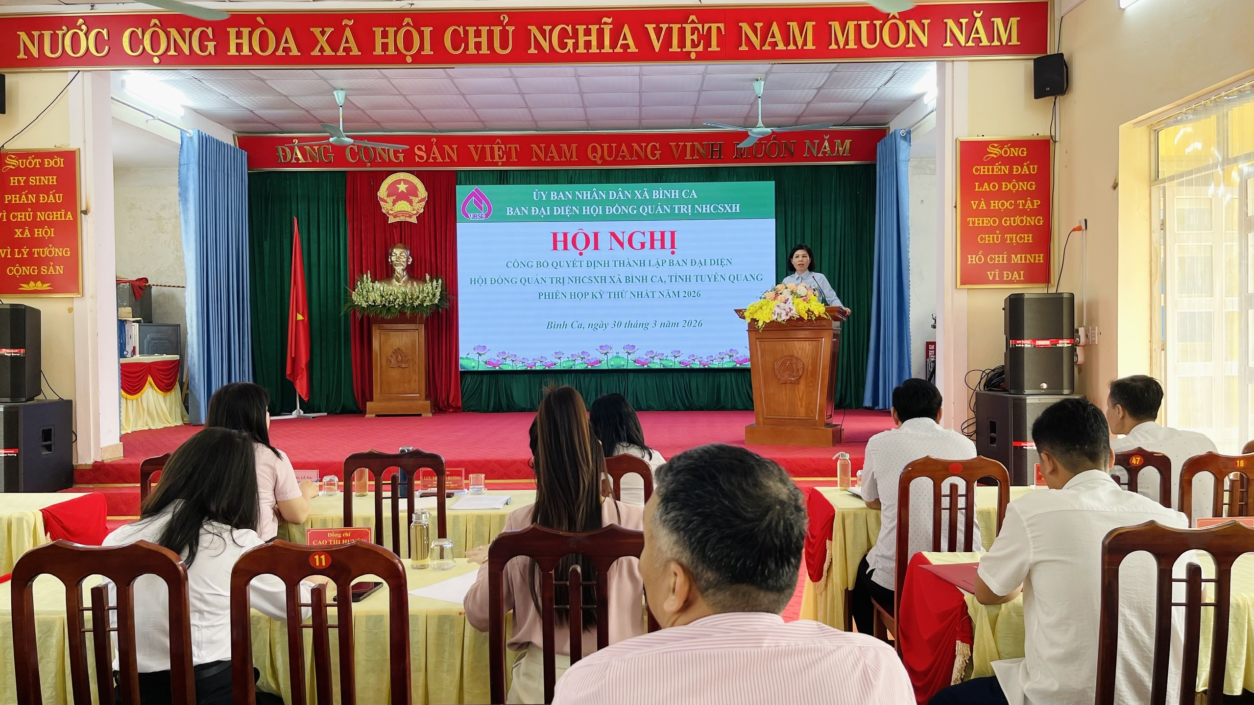 Theo Quyết định, Ban đại diện Hội đồng quản trị NHCSXH xã Bình Ca gồm 4 thành viên. Đồng chí Lưu Thị Lan Hương, Phó Bí thư Đảng ủy, Chủ tịch UBND xã Bình Ca giữ chức Trưởng ban. Các thành viên gồm: đồng chí Lý Thị Giang, Chủ tịch Ủy ban MTTQ Việt Nam xã; đồng chí Nguyễn Đức Tính, Trưởng phòng Văn hóa – Xã hội; đồng chí Hoàng Lê Na, Giám đốc Phòng giao dịch NHCSXH Sơn Dương.