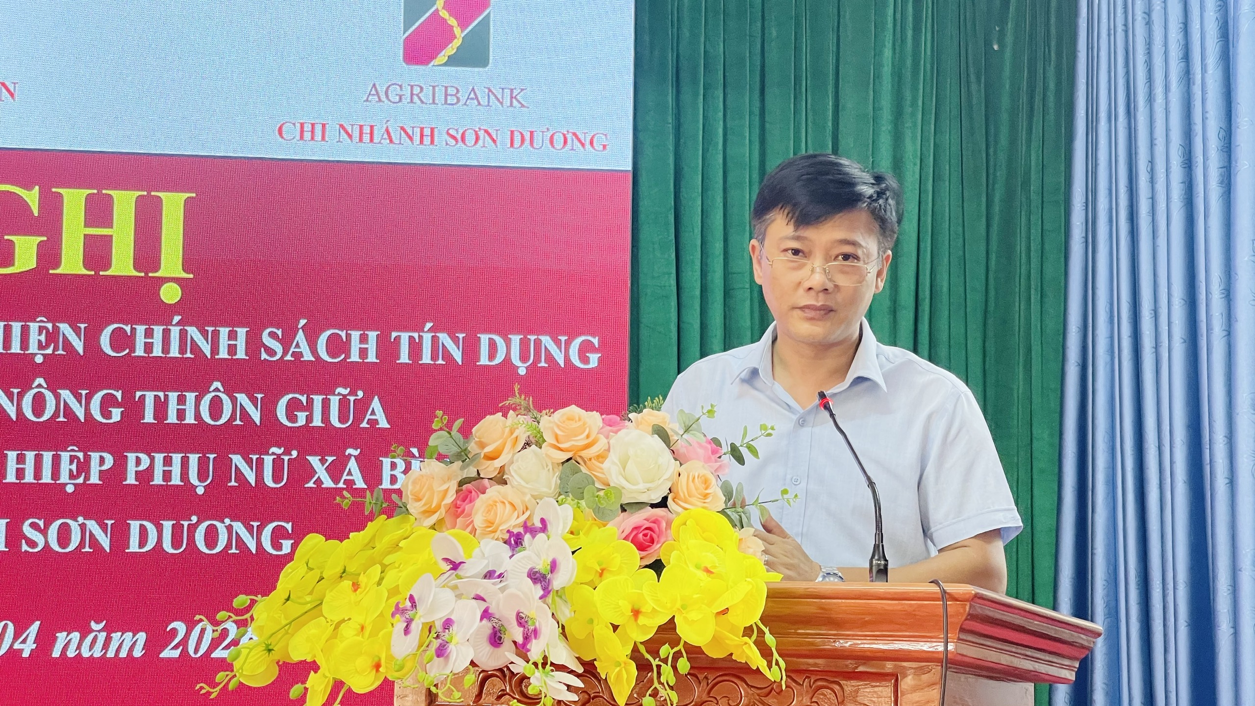 Ông Nguyễn Đức Nguyệt, Phó Giám đốc Ngân hàng Agribank Chi nhánh Sơn Dương phát biểu tại hội nghị.