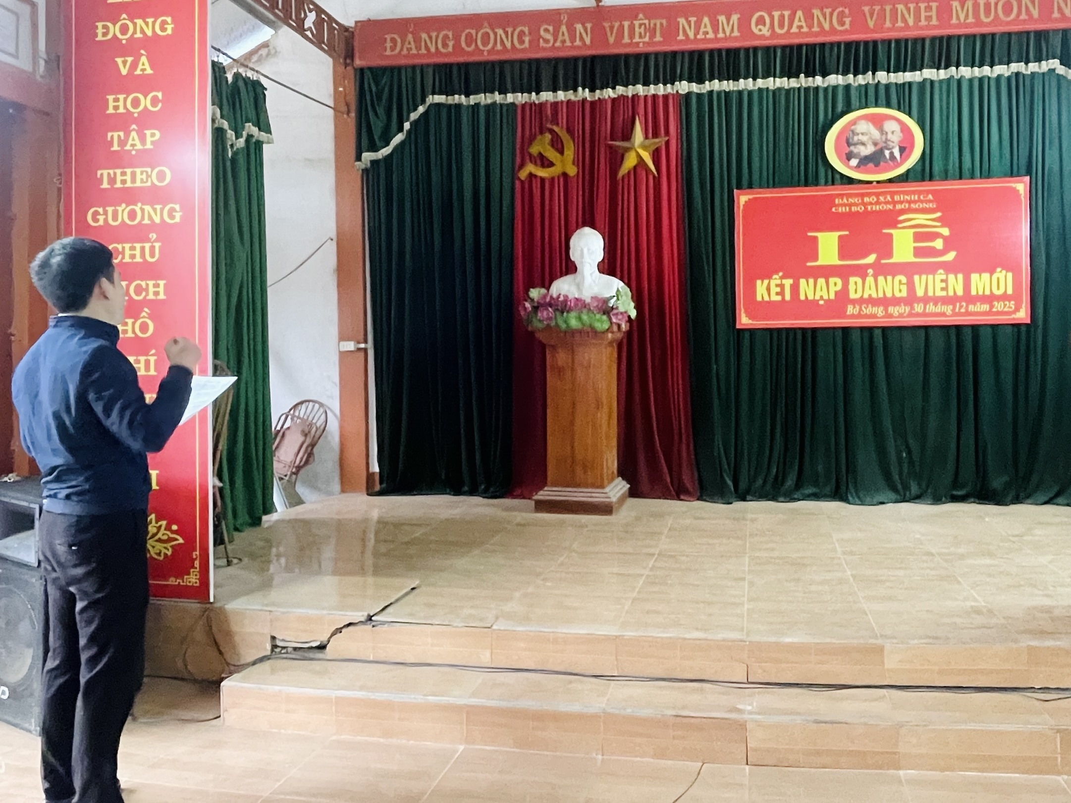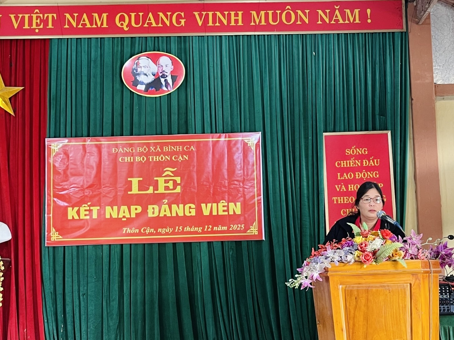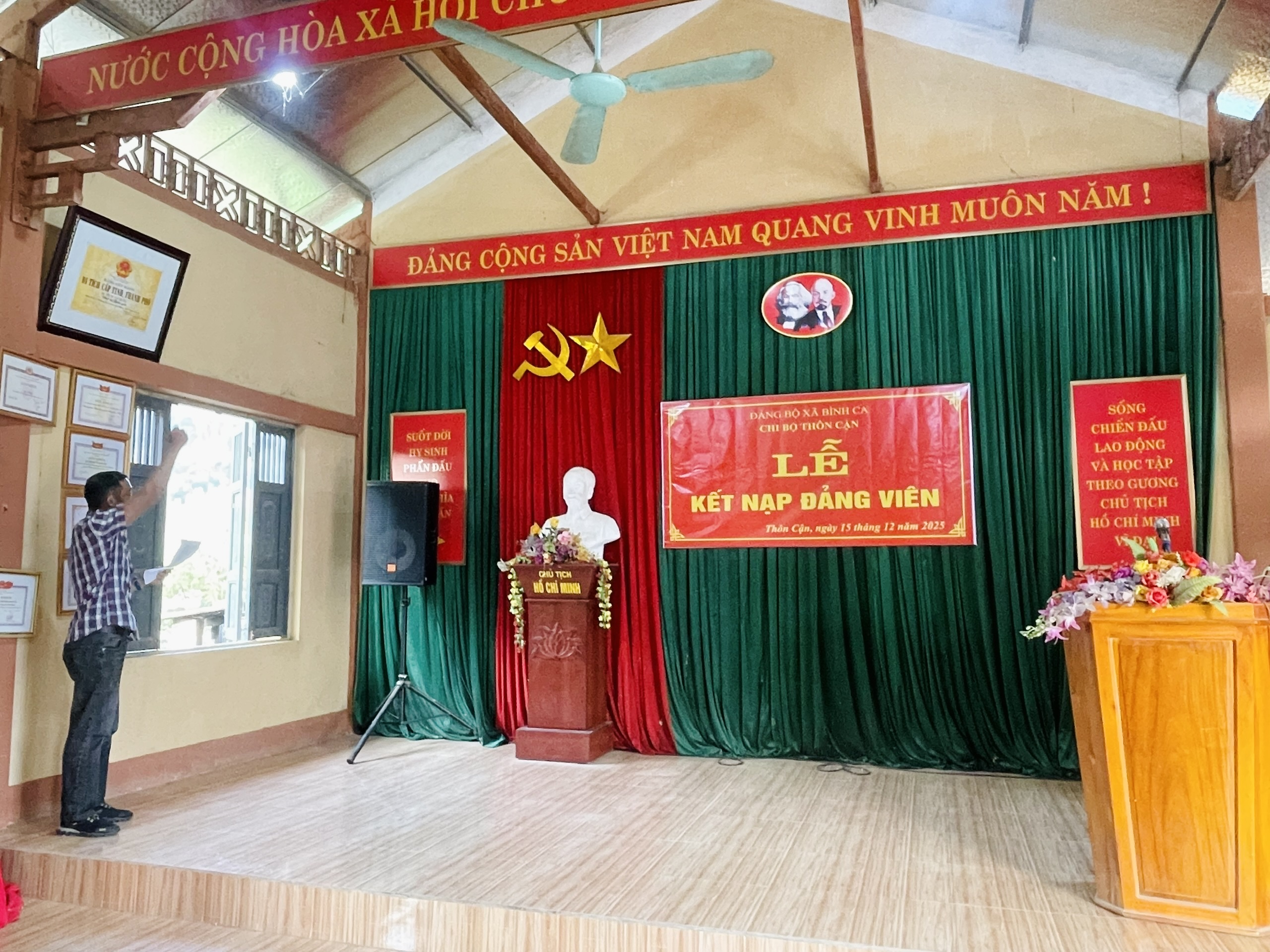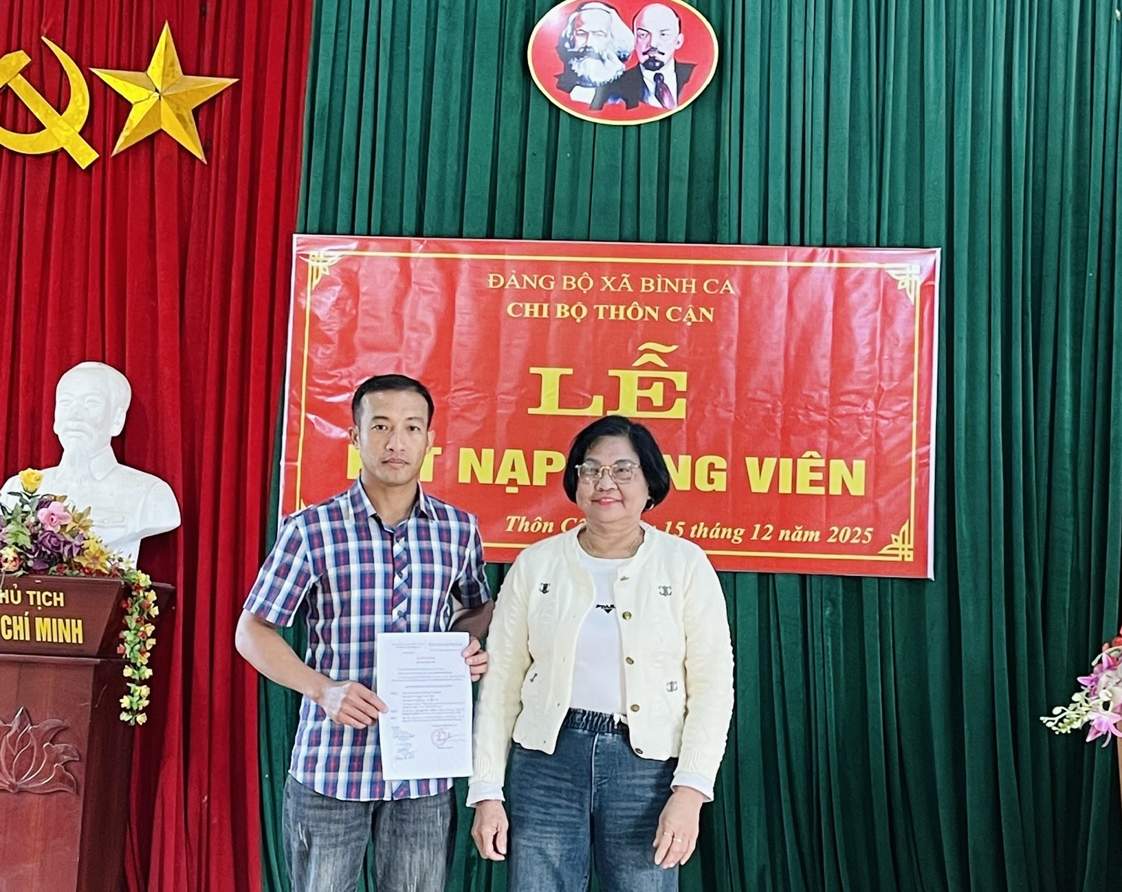 Dự Lễ kết nạp Đảng viên mới tại Chi bộ thôn Bờ Sông có đồng chí Lý Thị Giang, Ủy viên Ban Thường vụ Đảng ủy, Chủ tịch Ủy ban MTTQ Việt Nam xã Bình Ca. Tại các thôn, lãnh đạo chi bộ đã trao Quyết định kết nạp Đảng cho các quần chúng ưu tú Nguyễn Quốc Huy, Chi bộ thôn Bờ Sông; Phạm Thị Khánh, Chi bộ thôn Bình Ca; Đinh Diệu Thu, Chi bộ thôn Phú Lương; Đỗ Thị Thúy Loan, Chi bộ thôn Tiến Thắng; Khổng Văn Quyết, Chi bộ thôn Cận.