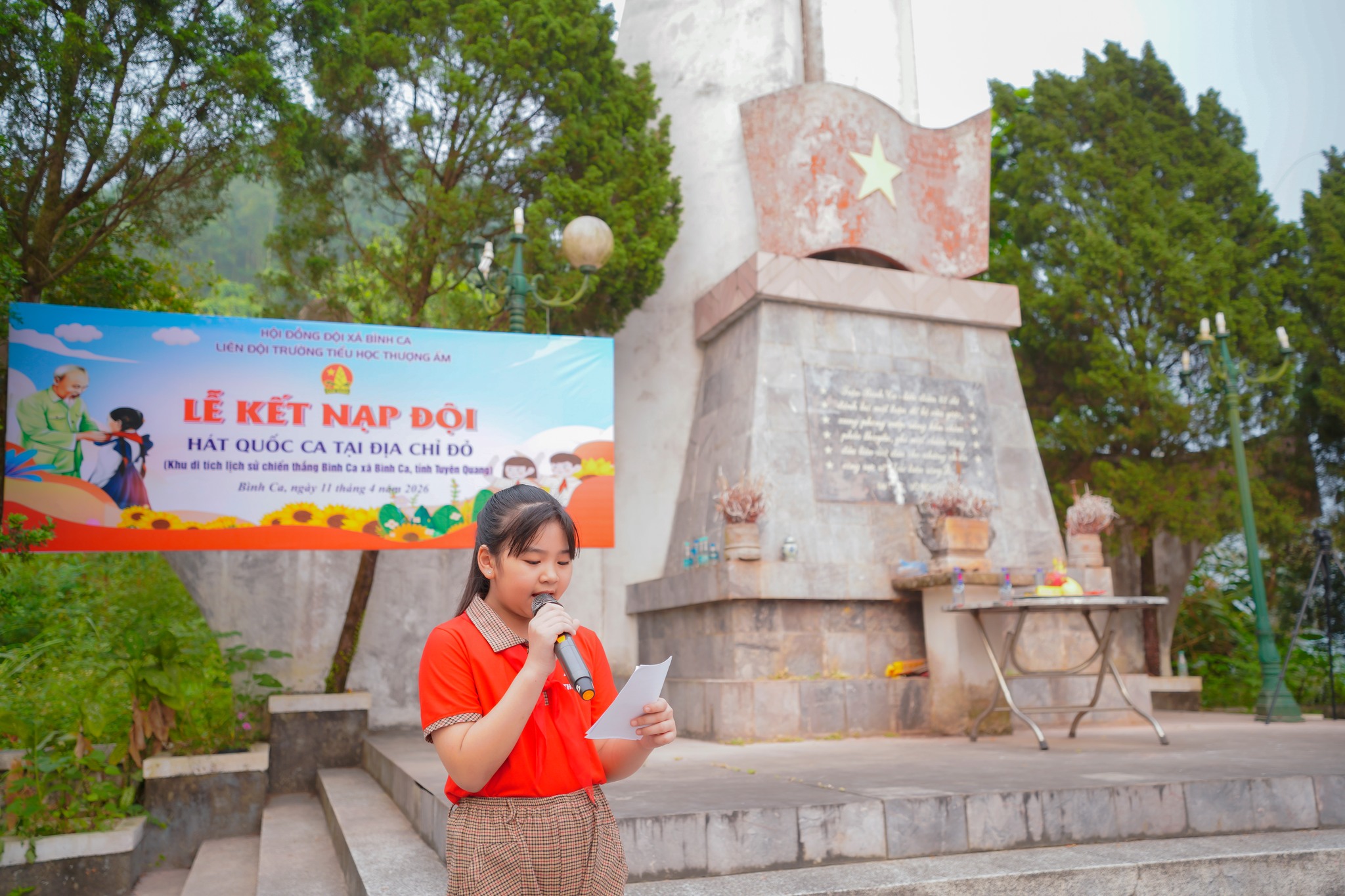 Buổi lễ diễn ra trong không khí trang nghiêm, xúc động. Tại không gian giàu giá trị lịch sử, dưới tượng đài chiến thắng, các em học sinh được nghe giới thiệu về ý nghĩa và chiến công của quân và dân ta trong Chiến dịch Việt Bắc năm 1947, từ đó bồi đắp niềm tự hào và tình yêu quê hương, đất nước.