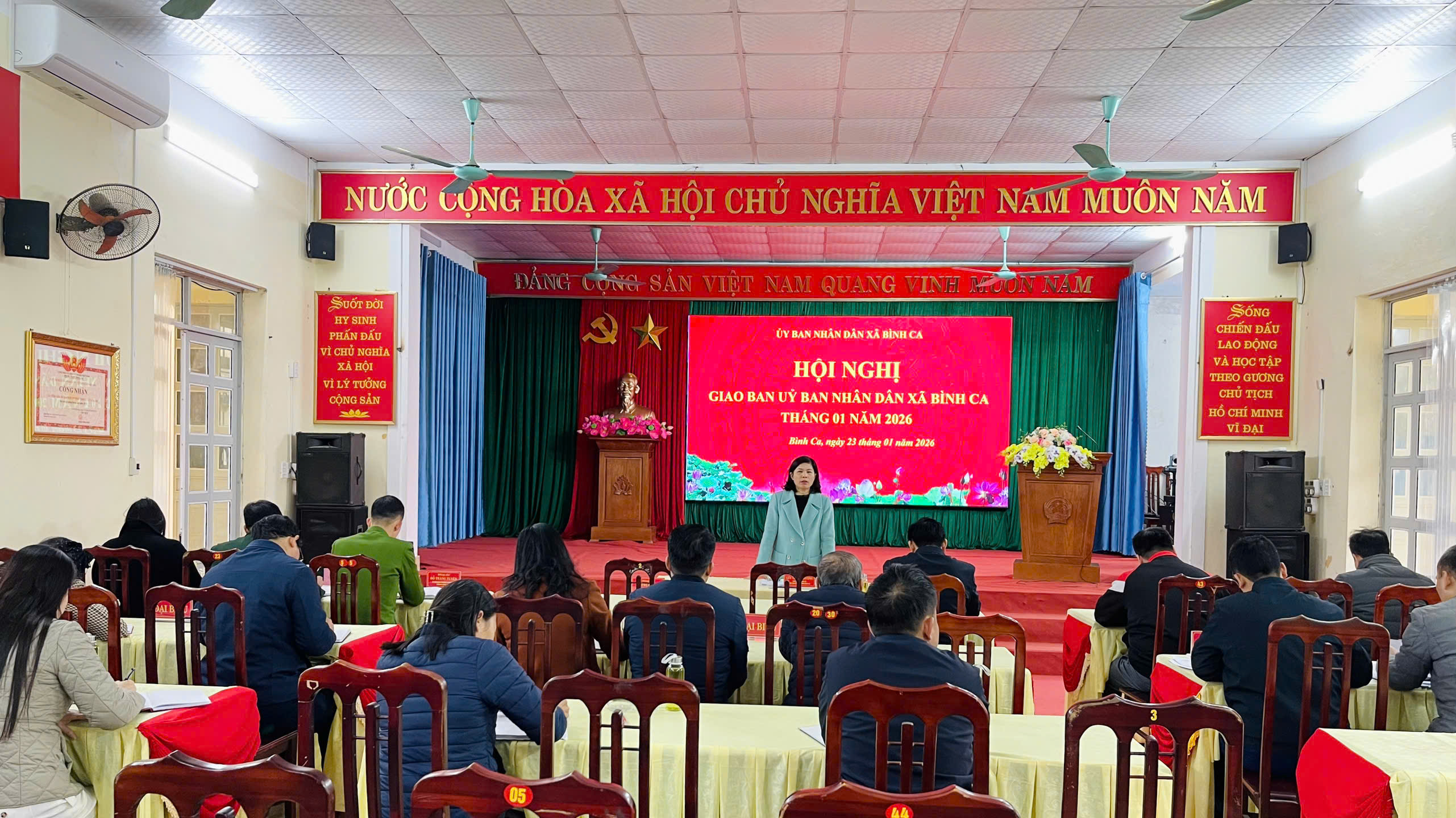 Phát biểu kết luận phiên họp, Chủ tịch UBND xã Lưu Thị Lan Hương ghi nhận và đánh giá cao những nỗ lực của các bộ phận chuyên môn trong thời gian qua; yêu cầu các đơn vị tập trung cao độ, quyết liệt triển khai các nhiệm vụ trọng tâm trong thời gian tới. Trọng tâm là công tác chăm lo Tết cho người nghèo; tổ chức thăm hỏi, tặng quà các đối tượng chính sách, đối tượng bảo trợ xã hội nhân dịp Tết Nguyên đán Bính Ngọ năm 2026. Bên cạnh đó, cần tăng cường quản lý đất đai, khoáng sản, môi trường; kịp thời phát hiện, ngăn chặn và xử lý nghiêm các trường hợp vi phạm theo quy định của pháp luật.