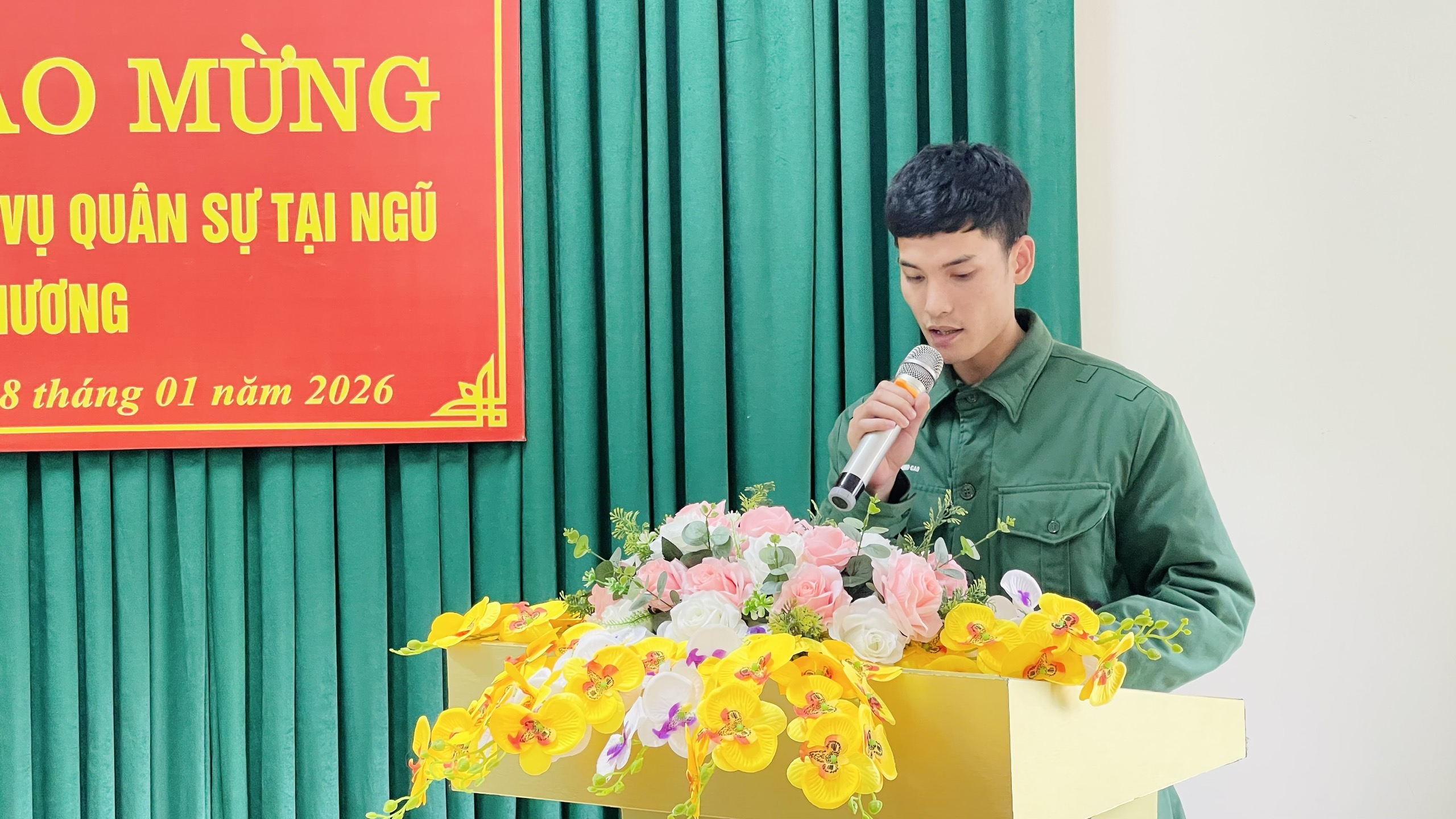 Đại diện các công dân hoàn thành nghĩa vụ quân sự phát biểu tại buổi lễ