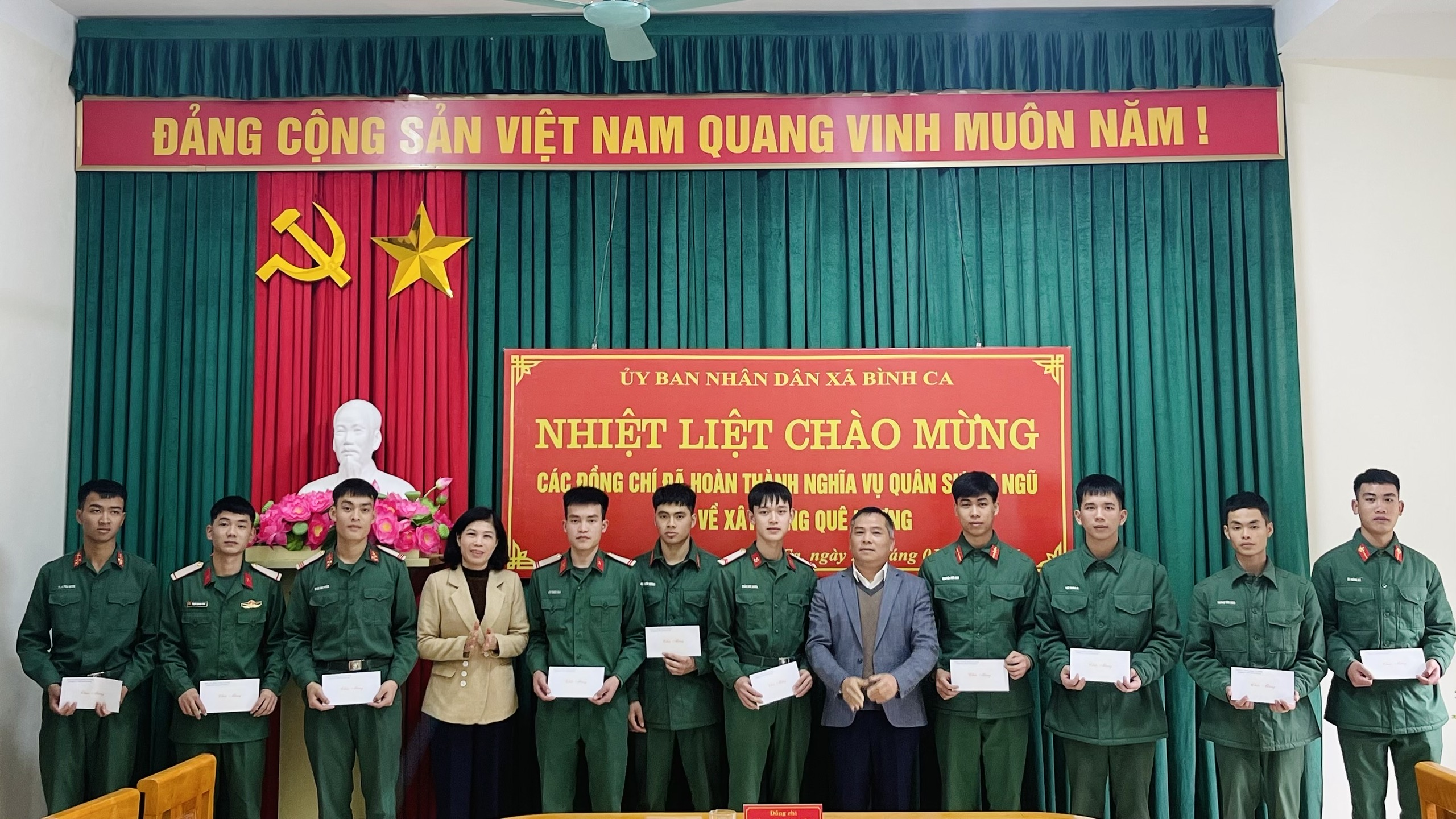 Nhân dịp này, Ủy ban Nhân dân xã Bình Ca đã tặng quà cho các đồng chí hoàn thành nghĩa quân sự trở về địa phương.
