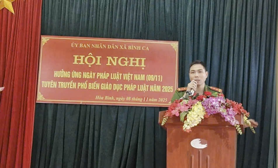 Hội nghị tuyên truyền, phổ biến, giáo dục pháp luật là hoạt động thiết thực để hưởng ứng Ngày Pháp luật Việt Nam, góp phần nâng cao ý thức thượng tôn pháp luật. Hội nghị thu hút sự tham gia của gần 50 người dân thôn Hòa Bình. Gồm cán bộ, công chức, chiến sĩ lực lượng vũ trang và Nhân dân thôn Hòa Bình. Tại Hội nghị nhan dân thôn Hòa Bình Đã được nghe phổ biến, tuyên truyền về các Luật như: Hôn nhân và gia đình, tảo hôn, phòng chống bạo lực gia đình; Luật tiếp công dân; Phòng chống ma túy; Phòng chống lừa đảo trên không gian mạng và Luật an toàn giao thông.
