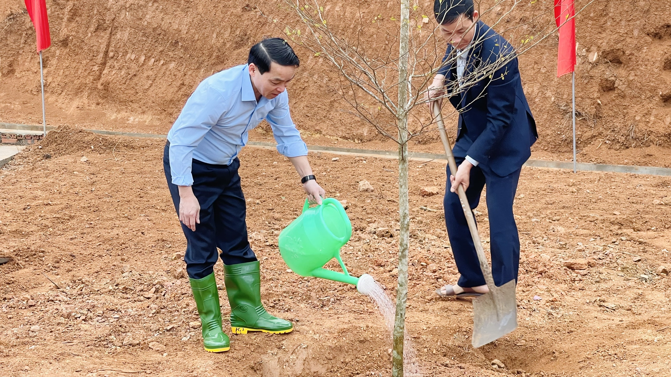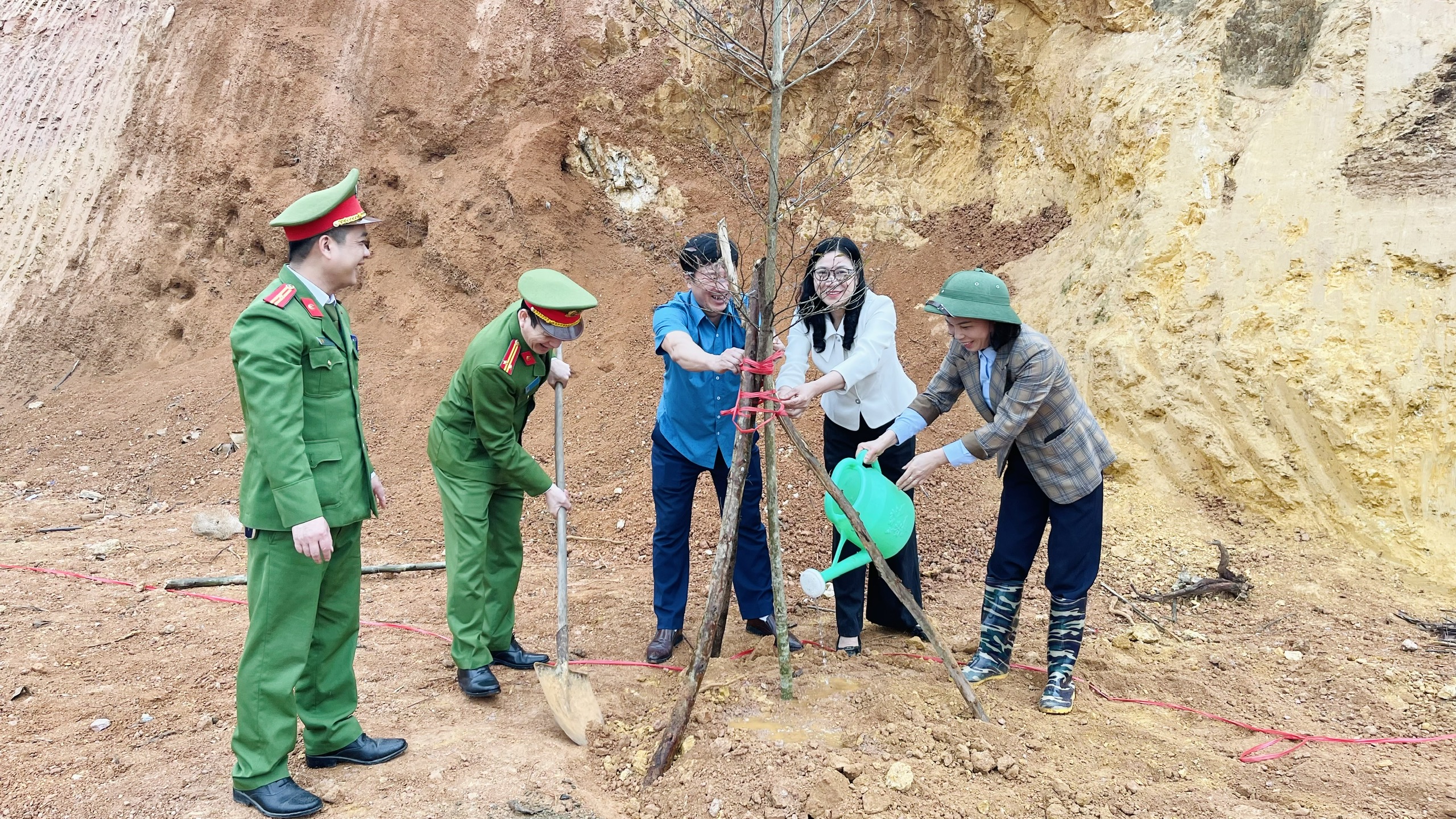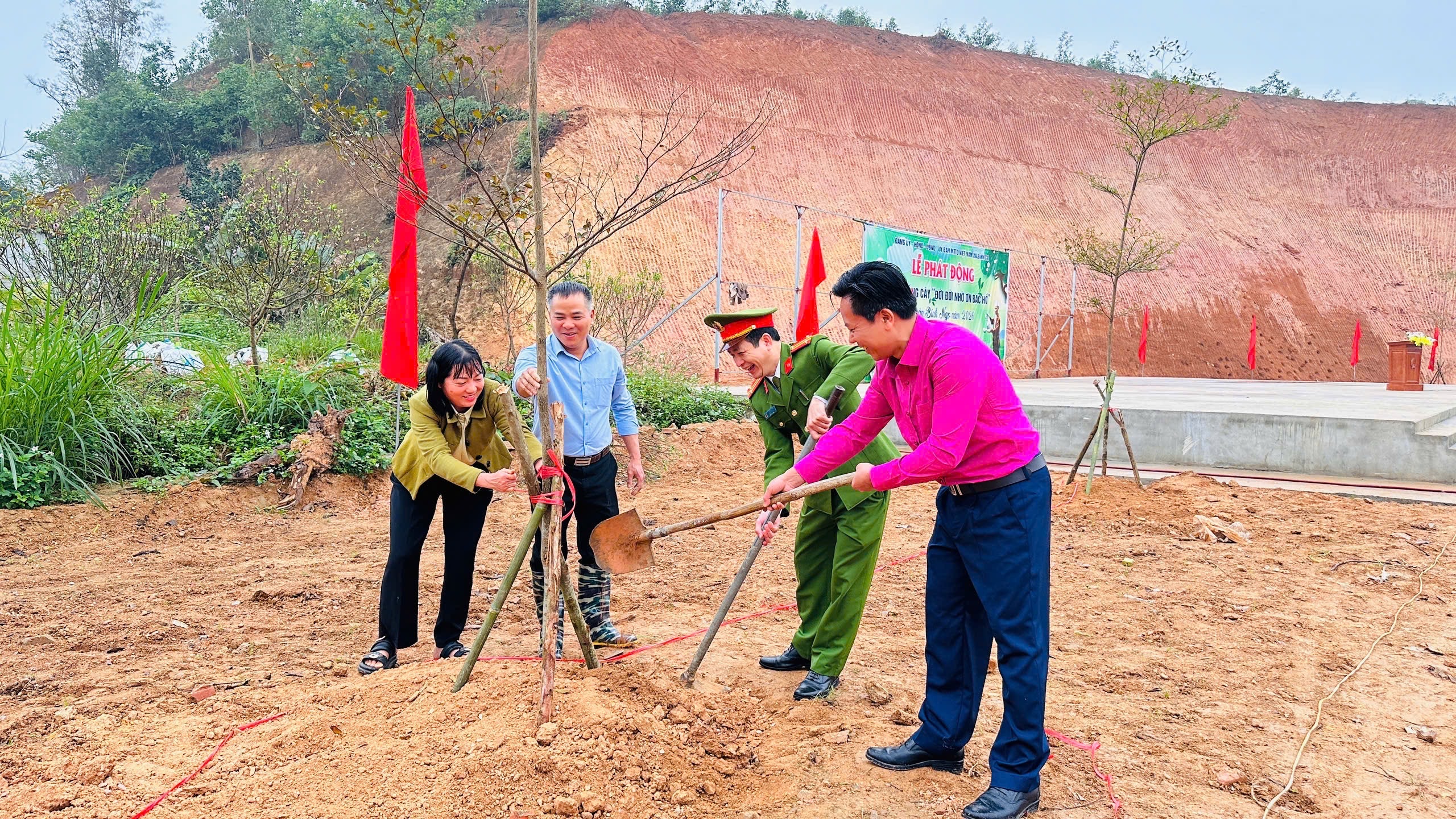 Các đồng chí lãnh đạo, cán bộ, công chức, viên chức, lực lượng vũ trang xã Bình Ca hưởng ứng Tết trồng cây.