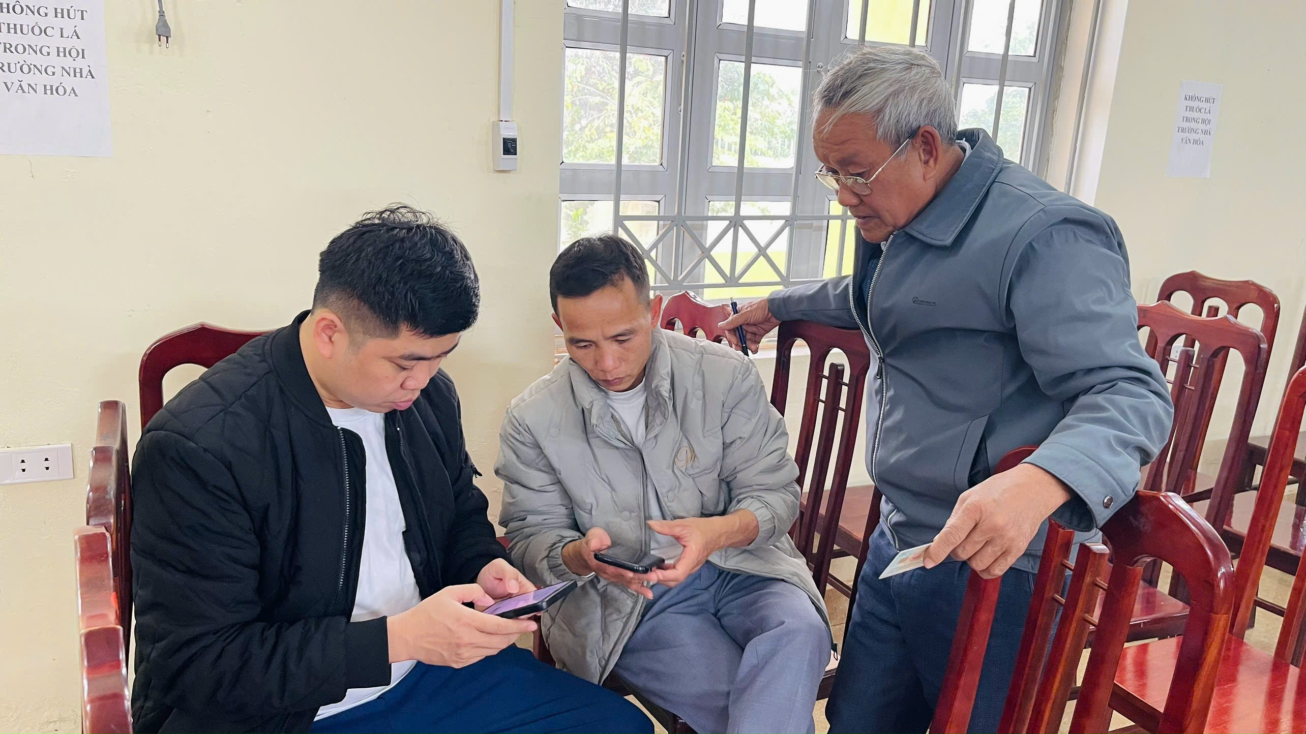Cán bộ hỗ trợ người dân thao tác trên thiết bị công nghệ