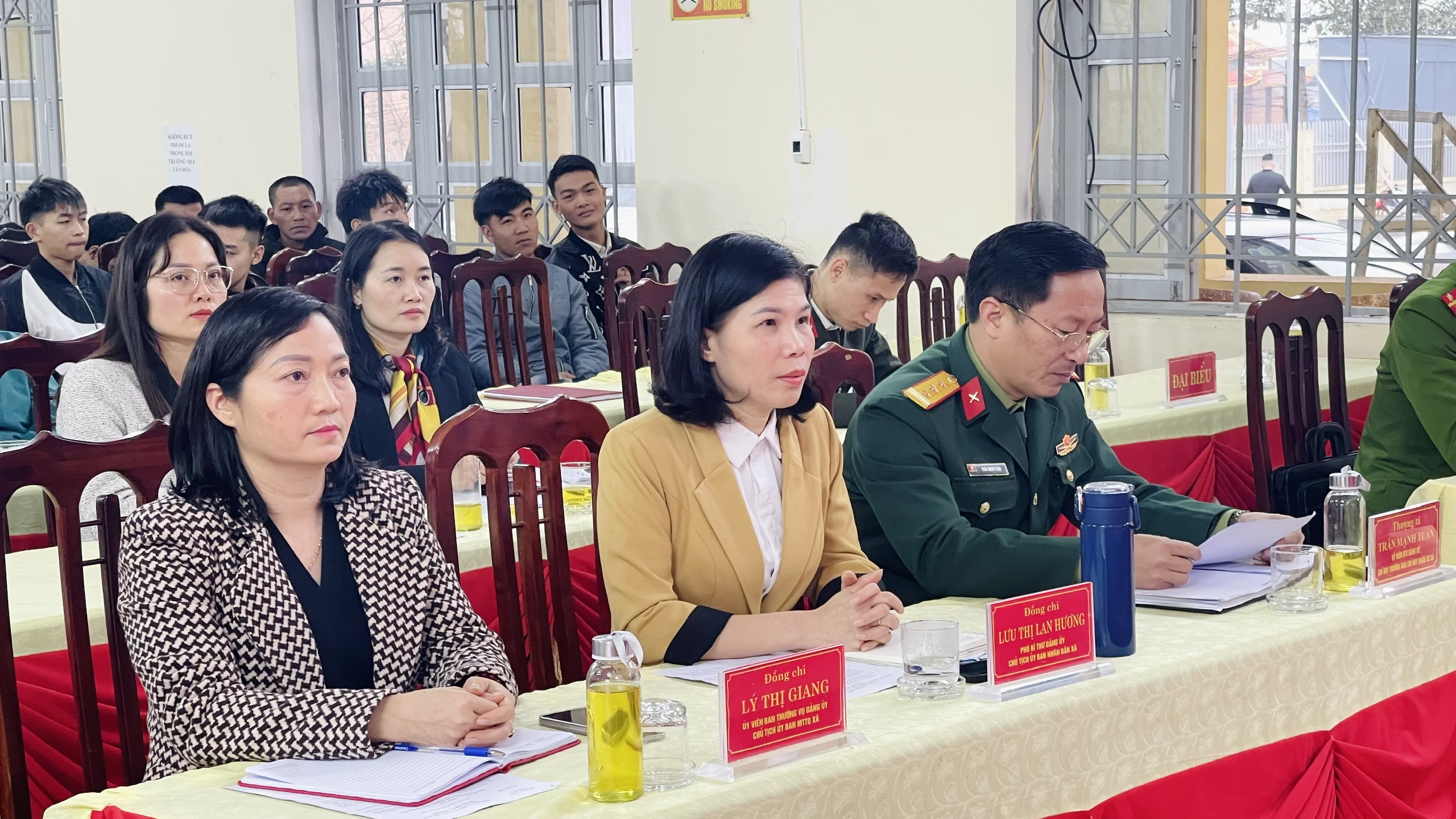 Dự và chủ trì hội nghị có đồng chí Lưu Thị Lan Hương, Phó Bí thư Đảng ủy, Chủ tịch UBND xã, Chủ tịch Hội đồng Nghĩa vụ quân sự xã. Cùng các đồng chí thành viên Hội đồng NVQS xã và các công dân trúng tuyển nghĩa vụ quân sự năm 2026.