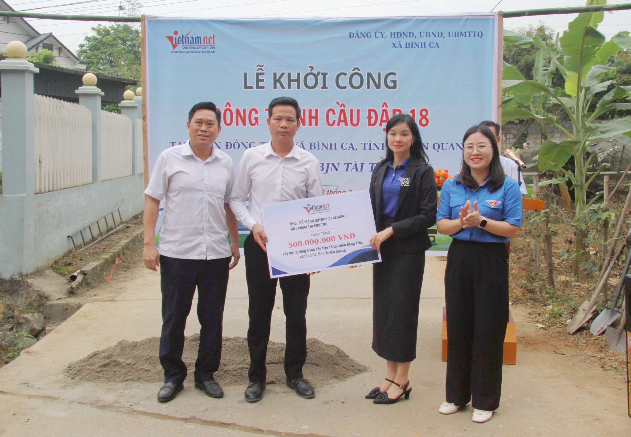 Sáng 22-3, Đảng ủy, HĐND, UBND, Ủy ban Mặt trận Tổ quốc Việt Nam xã Bình Ca phối hợp với Chi đoàn Báo và Phát thanh, Truyền hình Tuyên Quang, Đoàn Thanh niên Báo Vietnamnet tổ chức lễ khởi công xây dựng công trình cầu đập 18 tại thôn Đồng Trôi, xã Bình Ca.